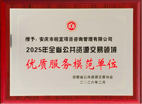 會(huì)上,對(duì)2025年度全省公共資源交易領(lǐng)域先進(jìn)典型進(jìn)行了表彰。皖宜公司斬獲“2025 年創(chuàng)新發(fā)展優(yōu)質(zhì)服務(wù)模范單位”榮譽(yù)稱號(hào);公司職工唐娟被授予“2025 年全省公共資源交易領(lǐng)域先進(jìn)標(biāo)兵”榮譽(yù)稱號(hào)。